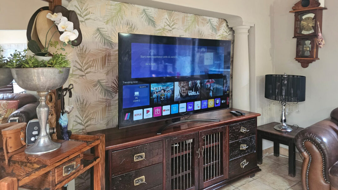 Sleeper couch, Android TV with Netflix and YouTube, free uncapped Wi-Fi, plus a Bluetooth mirror for music.